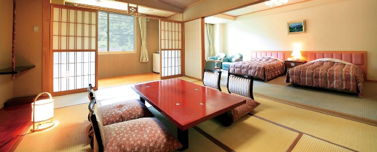 日式西式混搭客房采用宽敞的10张榻榻米的日式房间与带床的双人房相连的构造。